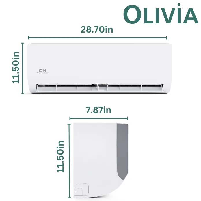 The Olivia Series Single Zone Ductless Mini Split Systems we offer have options of 16ft, 25ft, and 50ft kits. Auto-swing horizontal louvers maintain even airflow throughout the room, and the Genius Core Technology enables the unit to operate with an ultra-low compressor speed of 12Hz for extra energy savings, granting them a high-efficiency rating of up to 26.4 SEER2. This system will both heat and cool your home or office effectively down to -13°F for Standard units, and even down to -22°F for Hyper units. The units can be controlled with the Cooper & Hunter remote control, or via a smart device when used with the optional Wi-Fi kit and Cooper & Hunter Remote app. Other notable features include Follow Me Mode, Sleep Mode, Timer options, and 46°F Freeze Protection. The Olivia indoor wall-mounted series is an incredible option as a single or multi-zone mini split unit!