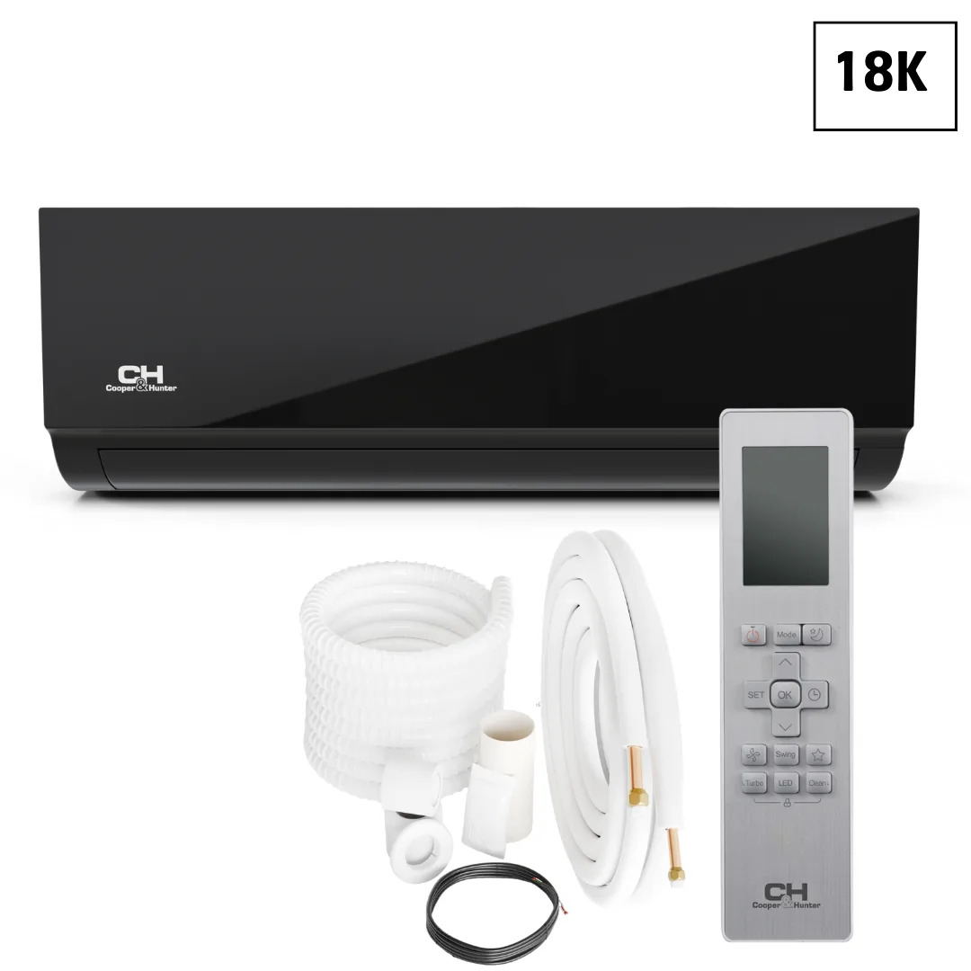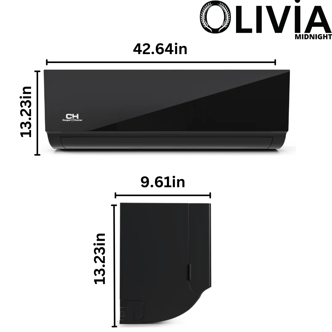 The option to choose both, aesthetics and functionality is brought by Cooper&Hunter's Olivia Midnight indoor wall-mounted mini split series. The sleek black panel design offers an alternative option to the standard, white-colored units. The Olivia Midnight series works as a single or multi-zone mini split unit. Auto-swing horizontal louvers maintain an even airflow throughout the room while some additional notable features include "Follow Me" mode, "Sleep" mode, "Timer" options, and 46°F Freeze Protection. Olivia Midnight models can be controlled with the included C&H remote control, or via any smart device when used in conjunction with Cooper&Hunter's optional Smart Kit and the C&H Remote app. This series of mini splits is available in 6K, 9K, 12K, 18K, and 24K Btu/h models and can be paired with Regular or Hyper Heat Pump Outdoor Units. The Genius Core Technology enables the unit to operate with an ultra-low compressor speed of 12Hz for extra energy savings granting them a rating of up to a 26.4 SEER2. These systems can heat and cool your home or office effectively down to -13°F for Standard units and even down to -22°F for Hyper units.
