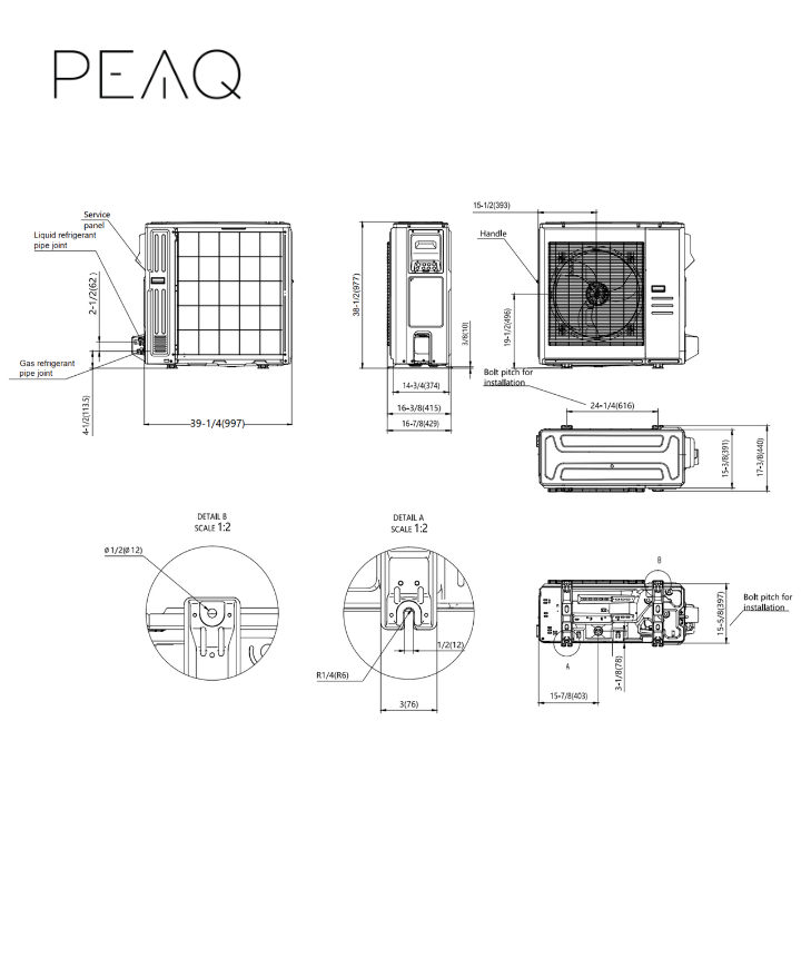 | Outdoor unit Dimensions (WxDxH) | 37.24 x 16.14 x 31.89 in |