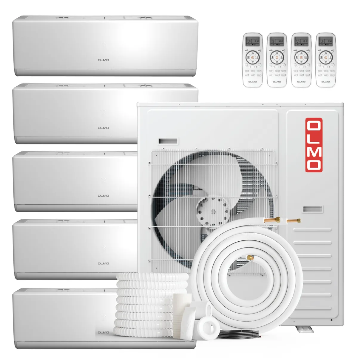 Olmo 5-Zone Mini Split AC & Heat Pump -- 42000 (3.5 Ton), Wall Mount Units (9K+9K+9K+12K+24K BTU), Inverter Technology, 230V, Heating & Cooling - R454B